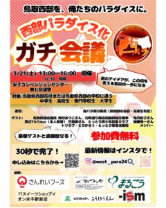 「とりまね」助成第五号のチーム西部パラダイスさんのイベントが開催されます。学生のアイデアで鳥取県西部を盛り上げるイベントです。